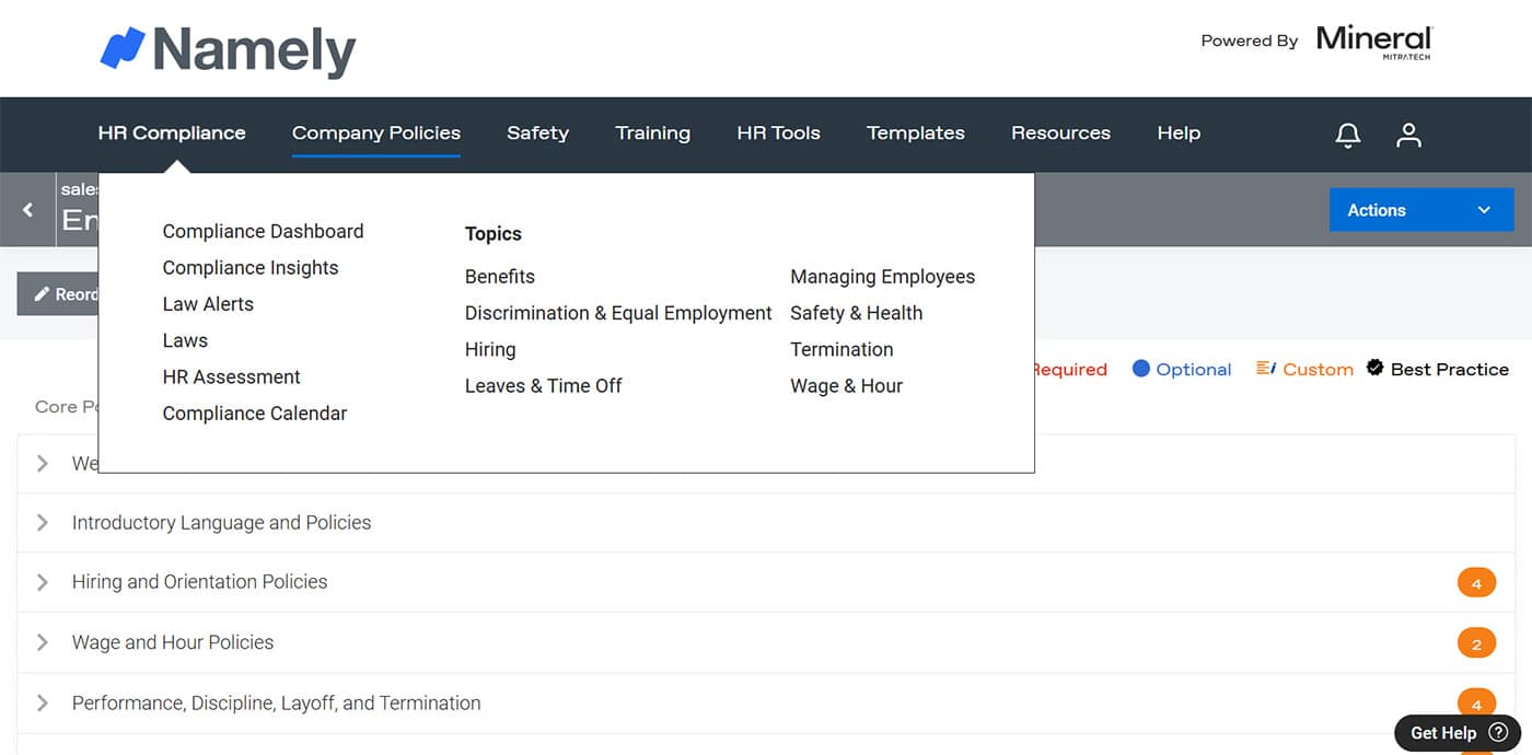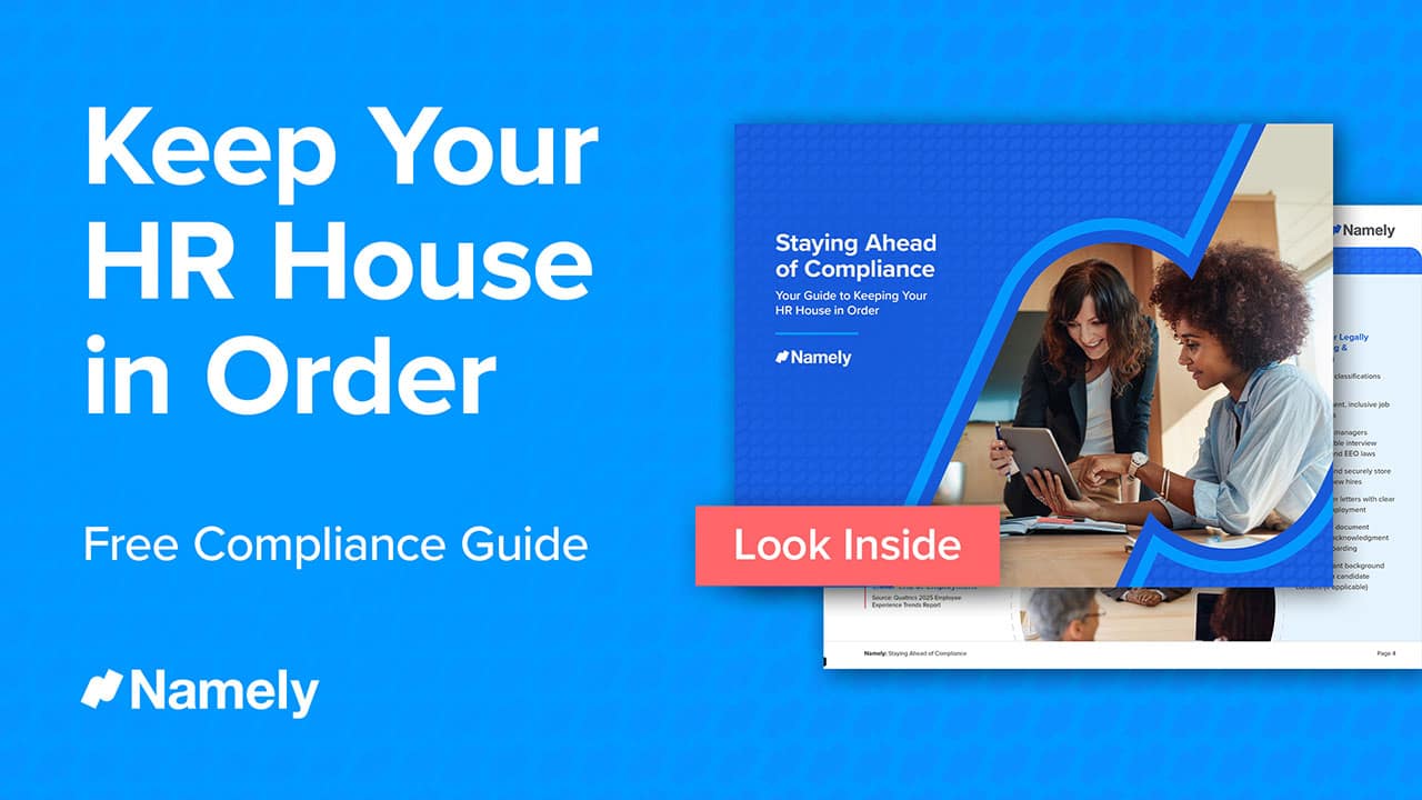 Namely covers the full scope of HR compliance, including advisor support, legal alerts, OSHA tracking, form templates, audits, and more.