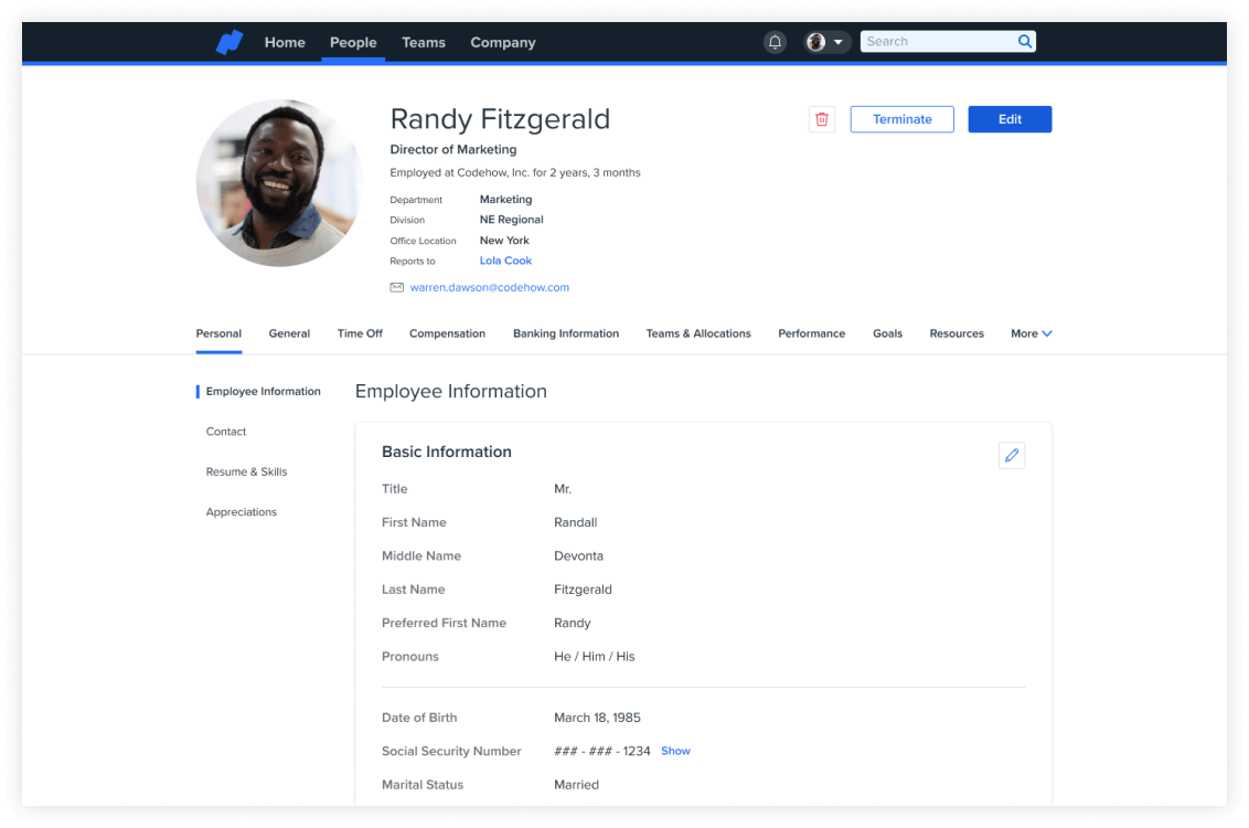 Say goodbye to spreadsheets, dual data entry, and multiple business systems. With Namely, your online employee database stores an unlimited amount of employee information and is seamlessly integrated with talent management, payroll, and benefits.