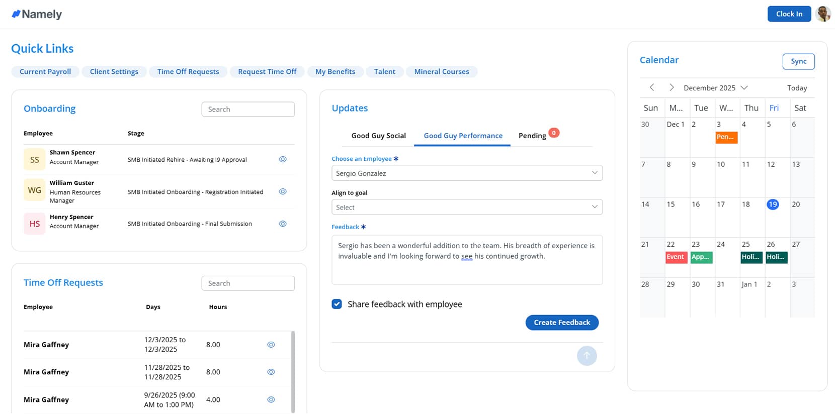 “Namely’s full suite of services couldn’t be beat! I love how holistic the tool is—everything from onboarding to workflows to performance to PTO all in one space.”